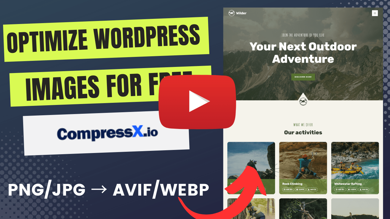 CompressX is a free and lightweight plugin for WordPress that converts JPEG and PNG images to modern formats like WebP and AVIF, then compresses those WebP/AVIF images on your own server.